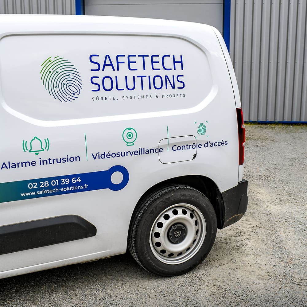 Spécialisée dans les solutions techniques et la sécurité, Safetech Solutions accompagne les professionnels avec rigueur et expertise sur le terrain. Dans une volonté de renforcer sa visibilité et d’affirmer son identité de marque lors de ses déplacements, l’entreprise a fait appel au Studio F Majuscule pour la conception et la réalisation du marquage de son véhicule.